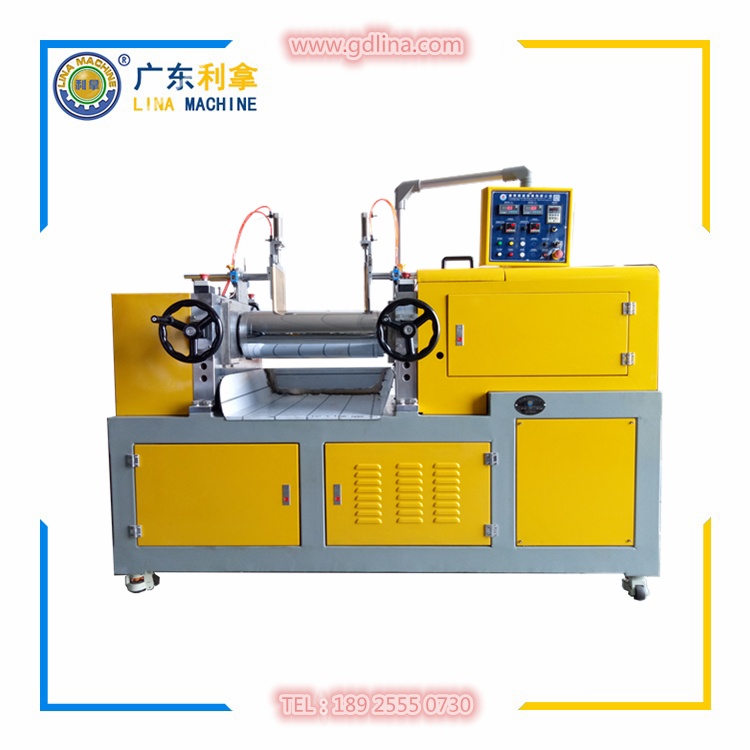 開煉機安全裝置改進除了開煉機四角有緊急制動開關外,在輥筒正前方設有與作業面齊平的胸碰開關,如作業人員發生意外身體自然向前傾斜,觸及輥筒前胸碰開關,兩輥筒立即停止的同時往外反轉,不需拆卸輥筒即可將手拿出,再次啟動后開煉機可保證正常運轉,克服了行業里因輥筒不能反轉或反轉導致傳動裝置損壞的難題。最大程度的保障煉膠師人身安全,方便多位制剎車,實現了人性化操作設計?。ㄓ心_踢式安全裝置可選,亦可根據客戶喜好采用傳統手拉桿式)