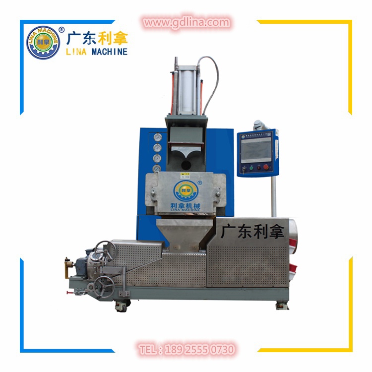 2、生產過程進行分段閉環(huán)溫度控制。根據工藝需求控制各自溫度吃料能力強。特別適用于直接經密煉機混煉的團狀物料擠出造料;